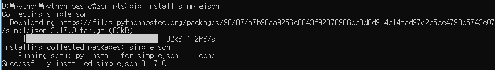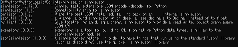 여기서 설치해 볼 패키지는 simplejson 이라는 패키지다