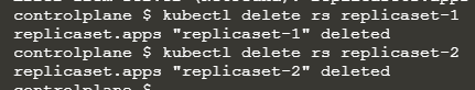 Q. Delete the two newly created ReplicaSets - replicaset-1 and replicaset-2
