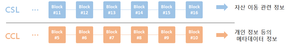 위 그림과 같이 CSL은 자산 관련된 정보를 처리하고, CCL은 다른 메타데이터를 저장하게 되므로 금융 규제나 스크립트 문제가 발생해도 CCL에서만 fork를 하므로 내 돈과는 관련이 없어진다.